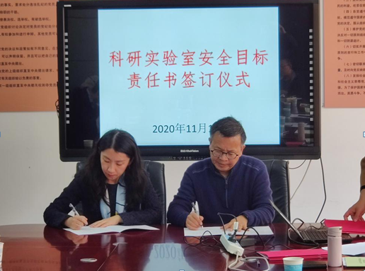 会上,孟庆红副校长与各部门负责人签订了科研实验室安全目标责任书。最后,孟庆红副校长指出,全校师生要认真学习领会《教育部关于加强高校实验室安全工作的意见》文件精神,落实学校、学院、实验室的三级安全责任制,确保实验室安全运行。孟庆红副校长强调,安全工作要坚持贯彻“安全第一、预防为主、综合治理”的十二字方针。一要高度重视,牢固树立“安全第一”的意识。按照“管行业必须管安全、管业务必须管安全”的要求,坚决贯彻“谁使用、谁负责,谁主管、谁负责”原则,把责任落实到岗位、落实到人头。二要“预防为主”,形成常态化管理。科技处(科研实验中心)作为科研实验室安全监管部门要与保卫处联合不定期巡查,对查找出的安全隐患限期整改并即时通报,限期整改不力的,依规追究实验室负责人的相应责任和相关学院领导责任。实验室安全工作要适时纳入年终相关考核。三要“综合治理”。安全工作需要群策群力,科技处(科研实验中心)、保卫处、后勤服务集团及各学院等学校各部门要形成合力,共同保障科研实验室安全。