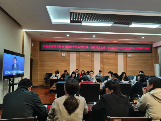 云中讯(科学技术处)为贯彻落实党的二十届三中全会精神,促进中医药传承创新发展,云南中医药大学科学技术处党支部、民族医药学院教师党支部与云南省药品和医疗器械审评中心党支部于9月11日在云南中医药大学呈贡校区开展联合主题党日活动。活动主题为“贯彻落实党的二十届三中全会精神,促进中医药传承创新发展”。会议由我校科学技术处党支部书记李莉主持,云南省药品和医疗器械审评中心副主任何道慧、民族医药学院党总支书记刘仁馨出席主题党日活动,三个支部全体党员参加活动。